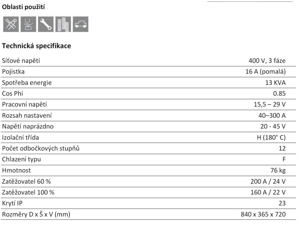 | Rozsah svařovacího proudu: | 40–300 A |